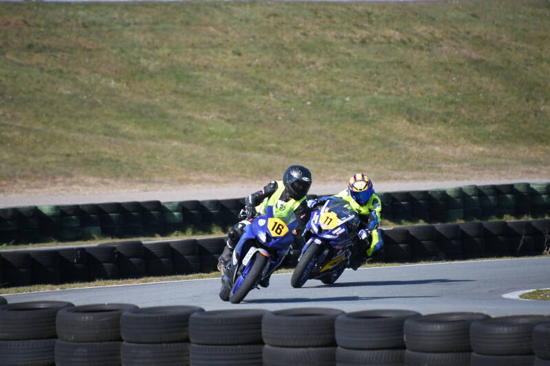 'Ow sh*t, ze rijden echt heel hard!' zei ik tegen mijn vader terwijl hij mij richting de baan duwde. 'Gewoon je ding doen, laat je niet gek maken' zei hij terug en ik ging de baan op. Doordat de rest zo snel was had ik moeite met de lijnen rijden, misschien bang om aangereden te worden door een snellere rijder. Maar de 125 reed fijn, wel moest ik wennen aan mijn nieuwe pak en de rits van mijn laarzen zat niet fijn. Ondanks alles ging het niet verkeerd, alleen nog alles behalve snel!